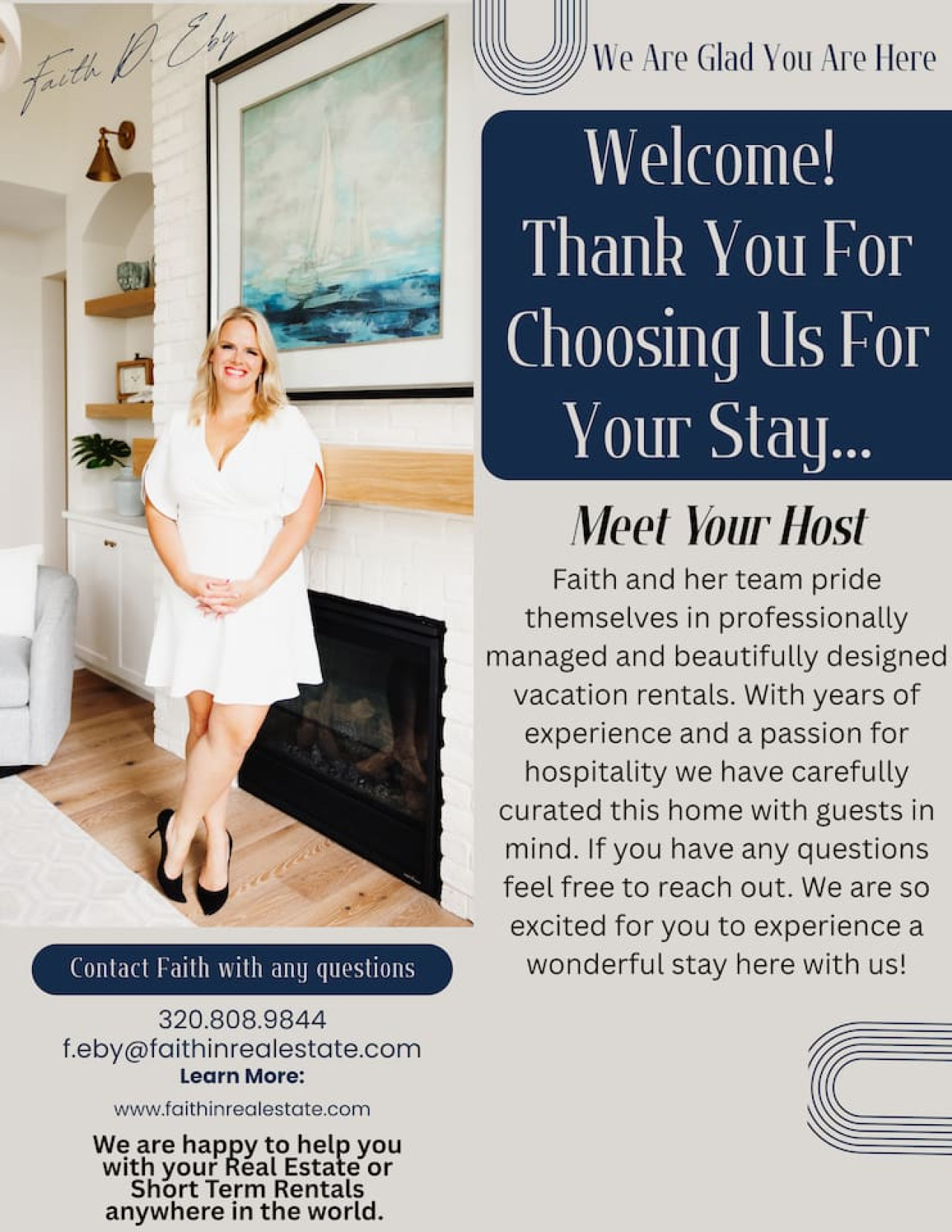 Your host Faith is available 24/7 via a call, text, or the messaging platform