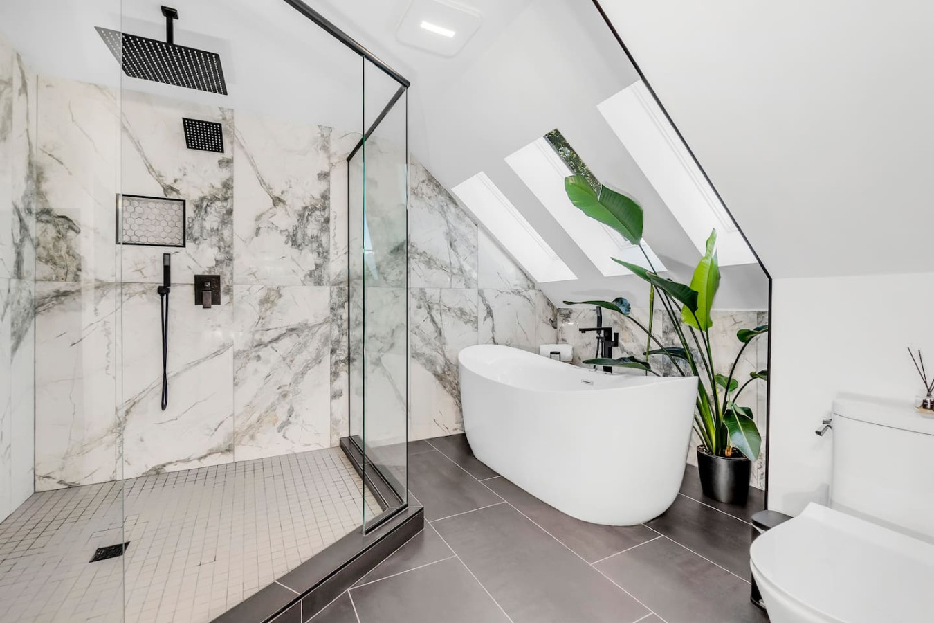 • Sprawling 1300sq. ft. Primary Suite – Enjoy a premium king bed, walk in closet, space to relax watching tv and a spa-like master bathroom with a multi-head shower, heated floors, and a freestanding lit jetted tub.