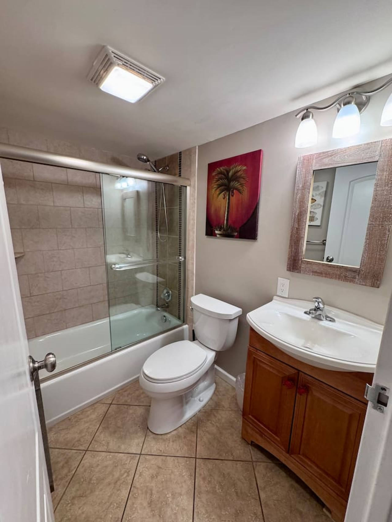 This 2-bedroom condo features a queen bed in the master bedroom and a second bedroom with 2 bunk beds (1 queen and 1 twin), accommodating families with children who will love the fun bunk bed setup. The layout works well for families looking for a comfortable beach vacation.