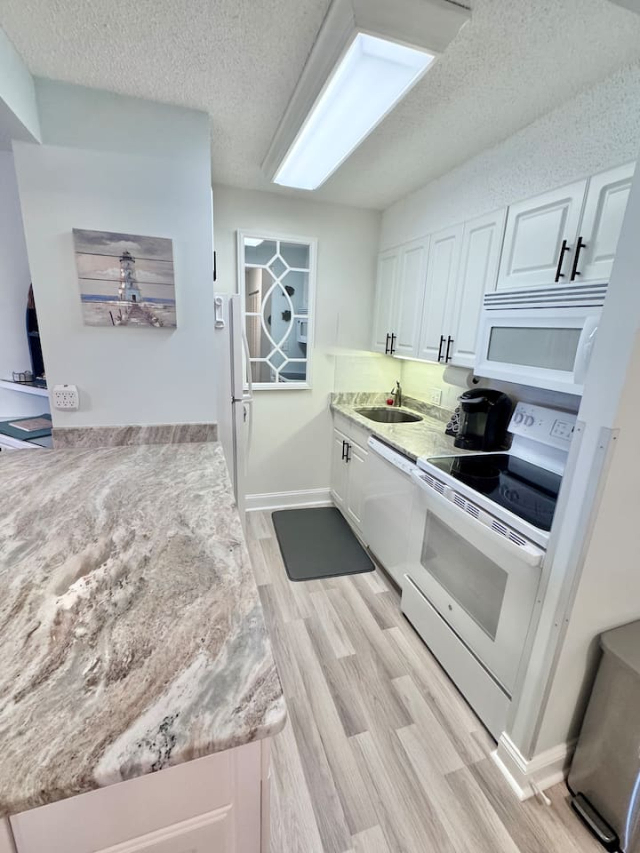 Completely stocked kitchen, dining table with family games nearby, a keurig for your morning coffee, and a ocean front balcony to drink it on.