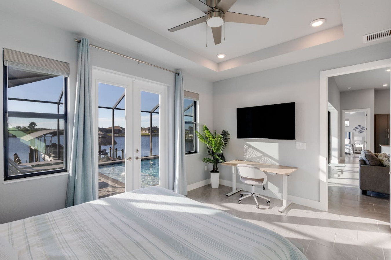 Welcome to this newly built 5-bedroom modern home in Cape Coral, Florida, where luxury meets tranquility! Perfectly situated one level home overlooking a heated pool, comfortable patio loungers, gas grill and a relaxing in pool hot tub/spa, this property offers westward breathtaking views of the canals gulf coast and unforgettable sunsets every evening!!
